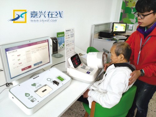 正說著,醫(yī)生俞為耿過來為歸志成做例行檢查,短短幾分鐘,機器就顯示出了他的健康數(shù)據(jù):收縮壓157mm/Hg,舒張壓63mm/Hg……“血壓比平常高,今天活動的時候得多注意一點!”“好嘞!”歸志成笑著應道。