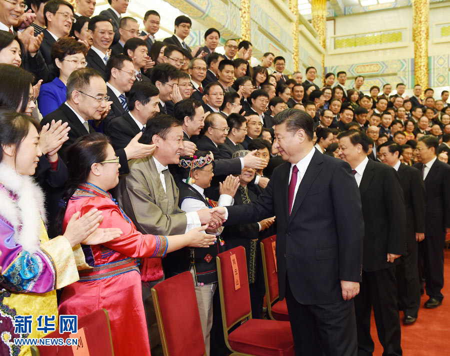 11月7日,黨和國家領(lǐng)導(dǎo)人習(xí)近平、劉云山等在北京人民大會堂會見中華全國新聞工作者協(xié)會第九屆理事會全體代表和中國新聞獎、長江韜奮獎獲獎?wù)叽怼P氯A社記者李學(xué)仁攝