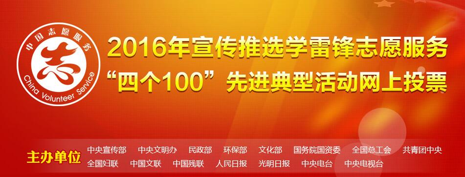 2016年宣傳推選學雷鋒志愿服務“四個100”先進典型活動進入事跡展示和群眾投票階段,廣大群眾可以瀏覽網上先進事跡展示,感受志愿服務精神,并為心目中的最美志愿者、最佳志愿服務組織、最佳志愿服務項目和最美志愿服務社區(qū)投票。