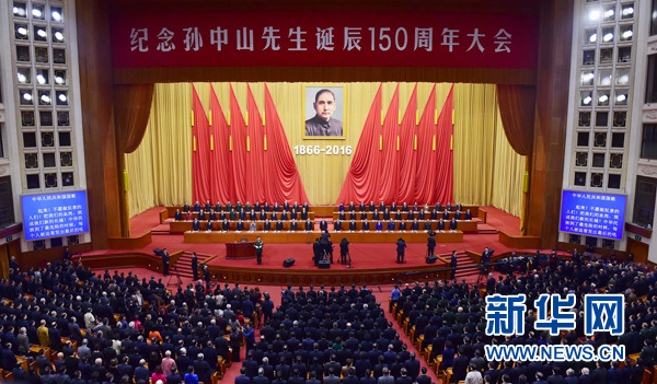 2016年11月11日,孫中山先生誕辰150周年之際,約3000名海內(nèi)外人士齊聚北京,在人民大會堂隆重集會,深切緬懷孫中山先生為民族獨立、社會進步、人民幸福建立的不朽功勛,傳承和弘揚他為國家和民族留下的寶貴精神遺產(chǎn)。