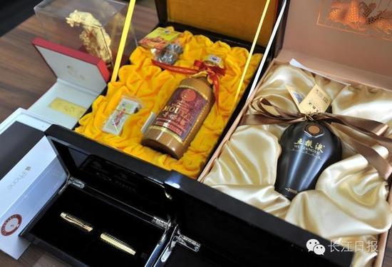 比較引人注目就是酒類,有紅酒、洋酒和白酒,記者看到現(xiàn)場有6瓶茅臺酒和6瓶五糧液,茅臺年份有50年和15年的,有的市場價為3萬多元一瓶,起拍價為9480元/瓶,五糧液每瓶起拍價為3770元。另外有一支派克鋼筆也比較引人注目,標簽上價格為11800元,起拍價為4600元。