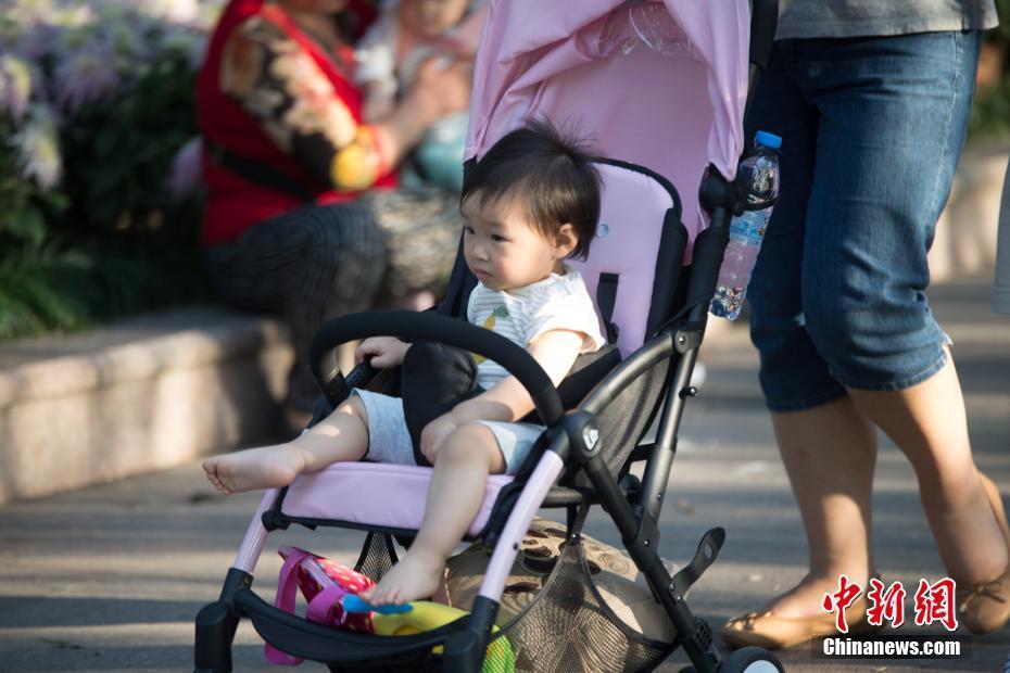 11月14日,福州市區(qū)溫度達(dá)到30℃,街頭隨處可見穿著短袖短褲出行的市民,時(shí)光仿佛仍停留在夏天。圖為幼兒也換上了短裝。 李南軒 攝