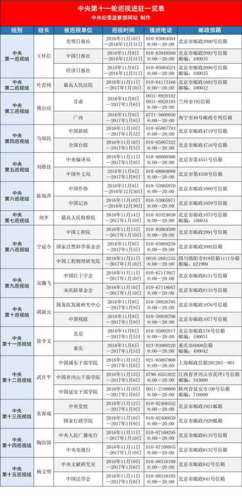 開欄的話:經(jīng)中央批準,十八屆中央第十一輪巡視將對最高人民法院、最高人民檢察院、中央黨校、中央文獻研究室、中央編譯局、中國外文局、光明日報社、中國日報社、經(jīng)濟日報社、中國浦東干部學院、中國井岡山干部學院、中國延安干部學院、中國工程院、國務院發(fā)展研究中心、國家行政學院、國家自然科學基金委員會、中國工程物理研究院、中央人民廣播電臺、中央電視臺、中國作家協(xié)會、中華全國歸國華僑聯(lián)合會、中國法學會、中華全國新聞工作者協(xié)會、中華全國臺灣同胞聯(lián)誼會、中國殘疾人聯(lián)合會、中國紅十字會、中國宋慶齡基金會等27個單位黨組織開展專項巡視,同時對北京、重慶、廣西、甘肅等4個省區(qū)市進行“回頭看”。近期,中央巡視組將陸續(xù)進駐上述地區(qū)和單位并召開動員會。中央紀委監(jiān)察部網(wǎng)站和客戶端開設專欄,及時發(fā)布相關情況,敬請關注。