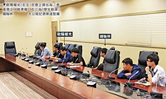 歐陽耀光(右五)在會上提出為“香港獨立”做準(zhǔn)備。右三為“學(xué)生動源”鐘翰林/大公報記者 陳達(dá)堅攝