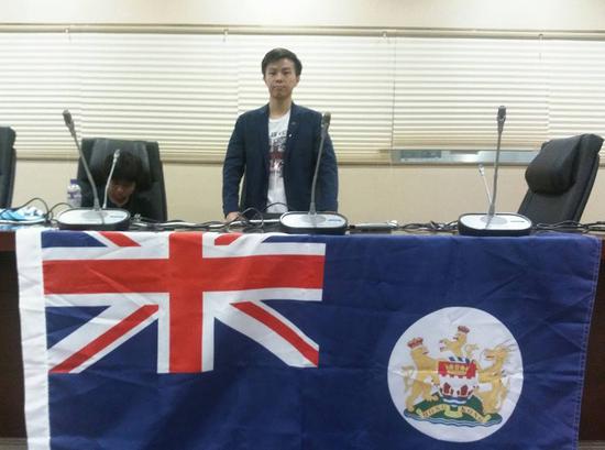 在香港中學(xué)生議會選舉中,以132票當(dāng)選的歐陽耀光,除了是一名中學(xué)生外,他亦是“港獨” 組織“學(xué)生動源”發(fā)起人之一。歐陽耀光的“港獨”心,在香港中學(xué)議會的政綱上表露無遺,他寫道,本土理念乃大勢所趨,他希望以中學(xué)生身份,把本土立場帶進(jìn) 中學(xué)生議會。昨日,他的選舉承諾果然“兌現(xiàn)”,在首次會議中,他帶著“港英旗”開會,開會后更不忘與旗幟合照,放上facebook。