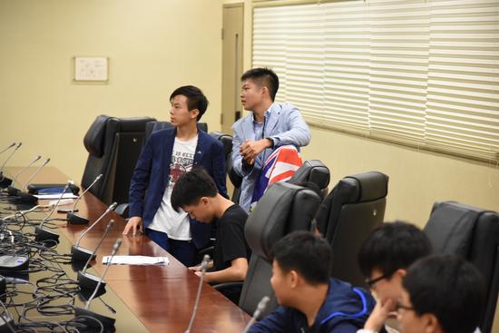 今屆議會有三名學(xué)生擔(dān)任議員,他們坐在“U”形的會議長桌前,每名議員身邊均有其議員助理,《大公報》記者發(fā)現(xiàn)歐陽耀光旁邊竟坐著“學(xué)生動源” 召集人鐘翰林!鐘更不時和歐陽耀光及其助理們交頭接耳。主持人要求鐘翰林坐到公眾席,歐陽耀光爭辯不果,鐘翰林之后悻悻然坐到《大公報》記者旁邊。
