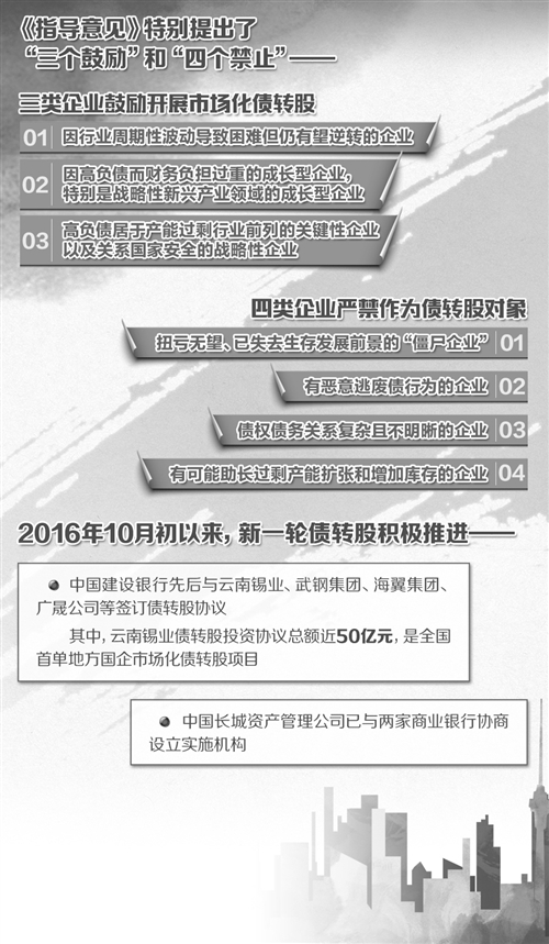 [經(jīng)濟(jì)日報·視點(diǎn)]債轉(zhuǎn)股對化解債務(wù)風(fēng)險、促進(jìn)產(chǎn)能重組優(yōu)化、提升優(yōu)質(zhì)企業(yè)持續(xù)健康發(fā)展能力、對沖經(jīng)濟(jì)下行壓力意義重大。但需要明確的是,此輪債轉(zhuǎn)股市場化屬性應(yīng)該得到充分彰顯,操作過程中必須做到市場化、法治化,積極引導(dǎo)社會資本參與,避免出現(xiàn)逃廢債和“甩包袱”——