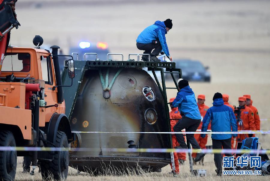 11月18日,工作人員在對返回艙進(jìn)行處置。記者從空間實(shí)驗(yàn)室飛行任務(wù)總指揮部了解到,11月18日13時(shí)59分,神舟十一號飛船返回艙在內(nèi)蒙古中部預(yù)定區(qū)域成功著陸,執(zhí)行飛行任務(wù)的航天員景海鵬、陳冬身體狀態(tài)良好,天宮二號與神舟十一號載人飛行任務(wù)取得圓滿成功。新華社記者 任軍川 攝