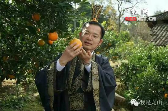 湘西州委常委、副州長孫法軍身著秦風(fēng)古裝當(dāng)起了網(wǎng)絡(luò)主播,給力為里耶臍橙代言。