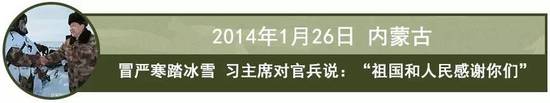 習(xí)主席專程來到位于祖國邊疆的內(nèi)蒙古阿爾山,踩著厚厚的積雪,冒著零下30多度的嚴(yán)寒,頂風(fēng)踏雪慰問在邊防線上巡邏執(zhí)勤的官兵?吹綉(zhàn)士們睫毛上都結(jié)了冰,習(xí)近平關(guān)切地詢問每天巡邏多長時間、多少公里?習(xí)主席說,你們抗冰雪斗嚴(yán)寒,爬冰臥雪,為祖國巡邏放哨,祖國和人民感謝你們!