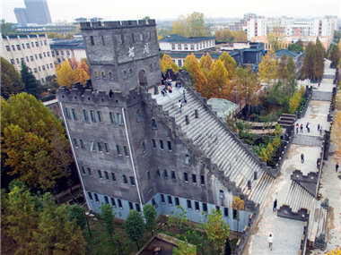 2016年11月26日,湖北省武漢市,因“校園長城”引發(fā)網(wǎng)友熱議武漢生物工程學院。去年學校建設的長城形建筑,總投資達400萬元,目的是為了...