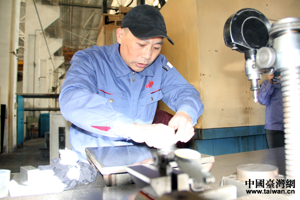 武漢重型機床集團有限公司高級技師、“研磨大師”魏紅權(quán)。(中國臺灣網(wǎng) 王怡然 攝)