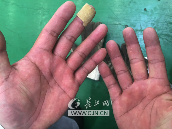 當(dāng)我問道手上的創(chuàng)口貼時,周虎笑著說,好的鉗工都不能戴手套,特別是在檢驗設(shè)備時,看看設(shè)備的接口處有無毛刺,所以手也會經(jīng)常受傷,舊傷未好新傷就來了,如果接口有毛刺,戴著手套是根本無法檢測的。
