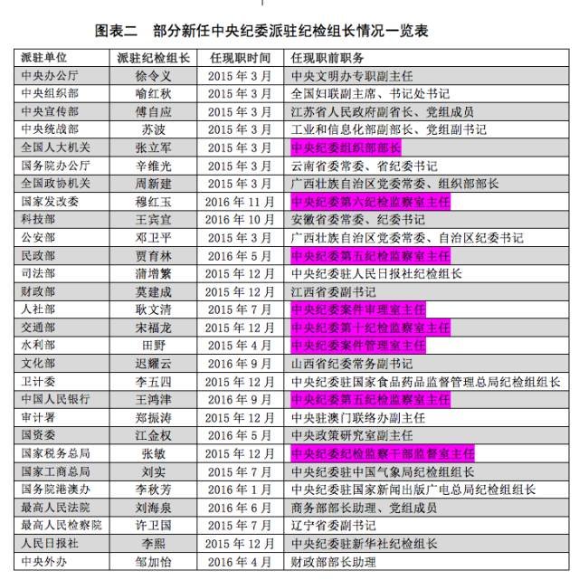 說(shuō)到這里,可以再來(lái)看一下2015年3月以來(lái),新任的中央紀(jì)委派駐紀(jì)檢組組長(zhǎng)的情況。(詳見(jiàn)圖表二)