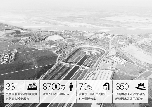 南水北調(diào)東中線全面通水兩年來,工程運行平穩(wěn),水質(zhì)全線達(dá)標(biāo),記者從國務(wù)院南水北調(diào)辦12月12日召開的新聞通氣會上獲悉:汩汩長江水解渴北方,受水區(qū)覆蓋北京、天津及河北、河南、山東、江蘇等省的33個地級市,受益人口達(dá)8700萬人。兩條輸水線成為發(fā)展保障線,沿線各地供水保證率提升,治污環(huán)保提速,生態(tài)環(huán)境改善。南水北調(diào),這一水資源優(yōu)化配置的重大戰(zhàn)略性基礎(chǔ)工程,取得實實在在的社會、經(jīng)濟、生態(tài)綜合效益。
