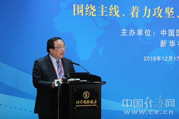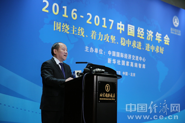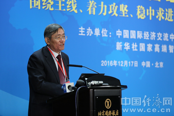 在2016—2017中國經(jīng)濟年會上,中國國際經(jīng)濟交流中心副理事長朱之鑫發(fā)表演講。孫宇攝