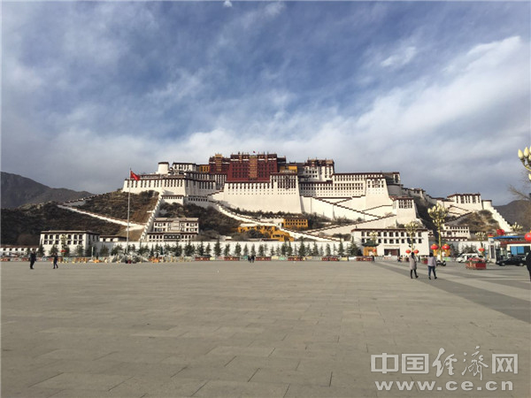 圖為冬日的布達(dá)拉宮,旅游淡季,布達(dá)拉宮廣場安靜恬謐。 中國經(jīng)濟網(wǎng)記者李婧 攝。