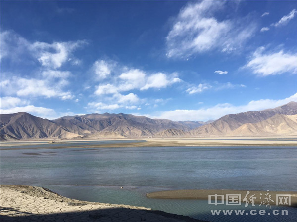 冬日藍(lán)天白云映襯下的雅魯藏布江。 中國經(jīng)濟網(wǎng)記者李婧 攝。