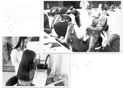 右上圖 VR、AR、人工智能等新技術(shù)成為互聯(lián)網(wǎng)產(chǎn)業(yè)的新風(fēng)口,圖為外國用戶體驗天貓VR購物。