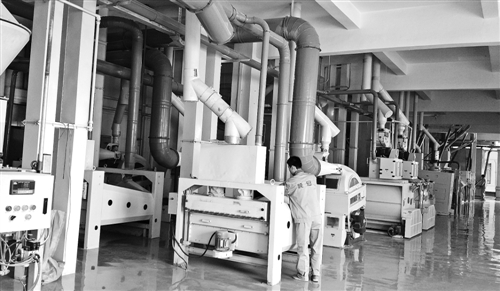 上圖 遼寧盤錦市鼎翔米業(yè)公司引進(jìn)具有世界先進(jìn)水平的大米加工生產(chǎn)線,確保大米加工品質(zhì)。圖為工人在檢查大米加工情況。 經(jīng)濟(jì)日?qǐng)?bào)記者 劉 慧攝