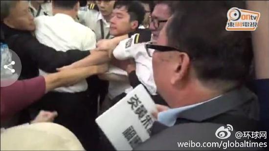 [環(huán)球網(wǎng)綜合報(bào)道 記者 趙衍龍]香港“眾志”秘書(shū)長(zhǎng)黃之鋒、“立法會(huì)議員”羅冠聰、以及2名主張“自決”的“議員”朱凱廸、姚松炎日前赴臺(tái)出席“臺(tái)獨(dú)”組織的論壇,其中黃之鋒和羅冠聰由出發(fā)到臺(tái)灣都分別遇到示威。繼黃之鋒今午返港時(shí)遇到示威,羅冠聰今晚返港落機(jī)時(shí)亦疑遇襲。香港東網(wǎng)1月8日?qǐng)?bào)道稱(chēng),抵港后的羅冠聰被多名示威人士撕破衣服,更被淋疑似奶茶的液體,羅最后在保安的護(hù)送下乘坐的士離開(kāi)。