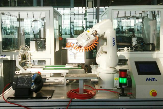 這款是用于教學(xué)的機(jī)器人,可以擔(dān)當(dāng)“高級技師”。它們能夠模擬典型應(yīng)用場景,通過實訓(xùn)臺的操作面板,幫助學(xué)生深入了解機(jī)器結(jié)構(gòu)和設(shè)計原理,掌握周邊設(shè)備的操作、編程、維護(hù)及保養(yǎng),從而“培養(yǎng)”出具備工業(yè)自動化系統(tǒng)編程調(diào)試綜合能力的學(xué)生。