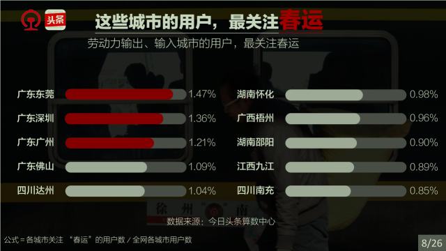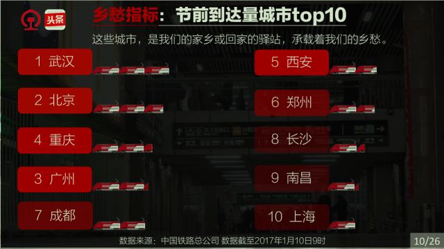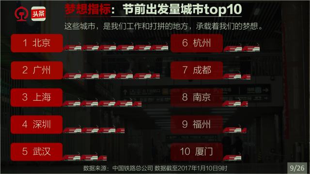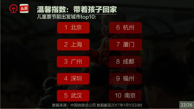 春運(yùn)是社會,春運(yùn)是文化,春運(yùn)縮影國與家。一年一度的春運(yùn),承載著國人的情感、目光和腳步。他們在關(guān)注著什么,他們的出行有什么規(guī)律,哪些城市、哪些人群又和春運(yùn)關(guān)聯(lián)度最高。中國鐵路和今日頭條通過對2017年春運(yùn)鐵路購票數(shù)據(jù)和今日頭條客戶端閱讀數(shù)據(jù)的分析,告訴你一個縮影國與家的春運(yùn)。