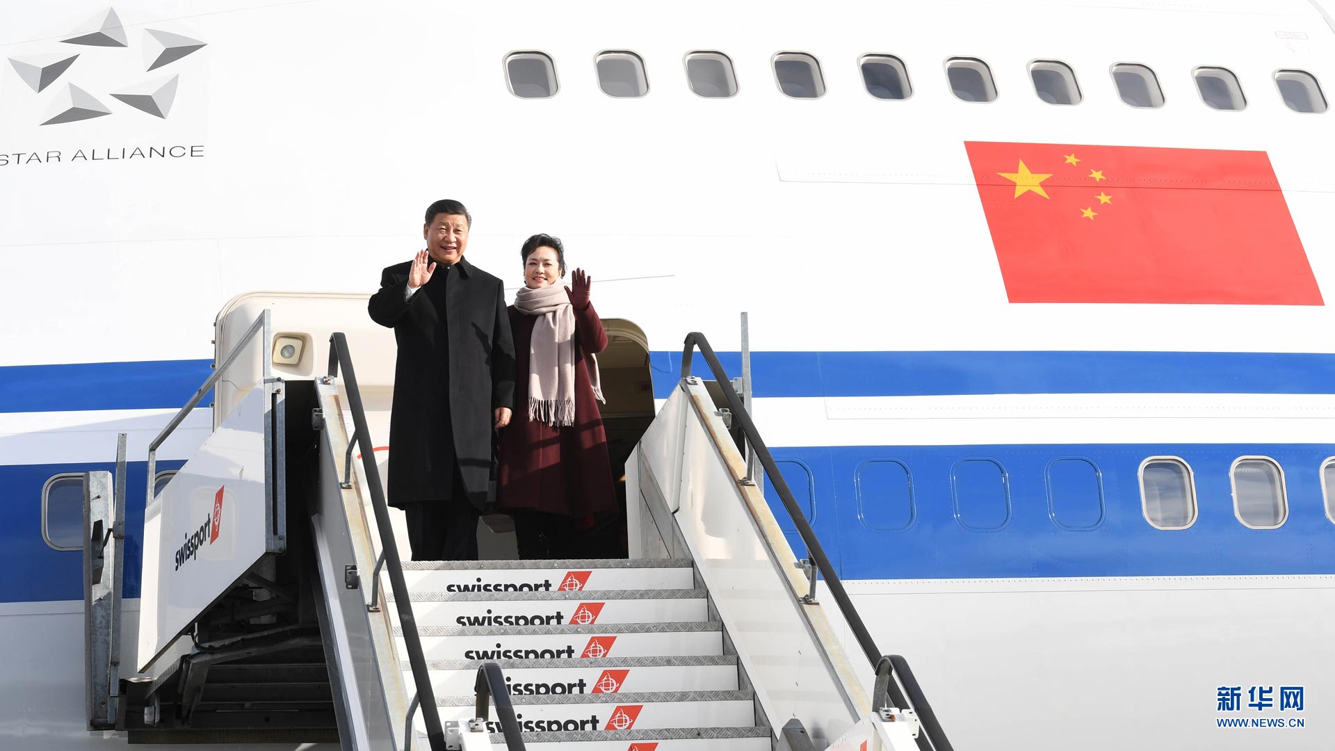 1月15日,國(guó)家主席習(xí)近平乘專機(jī)抵達(dá)蘇黎世,開(kāi)始對(duì)瑞士聯(lián)邦進(jìn)行國(guó)事訪問(wèn)。 這是習(xí)近平和夫人彭麗媛步出艙門(mén)。新華社記者饒愛(ài)民攝2017-01-16