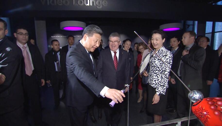 習近平和彭麗媛在巴赫主席夫婦陪同下,參觀國際奧林匹克博物館