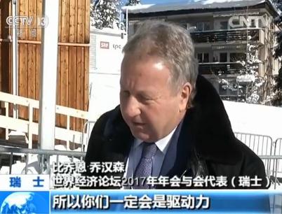 1月17日,中國(guó)國(guó)家主席習(xí)近平在瑞士達(dá)沃斯出席世界經(jīng)濟(jì)論壇2017年年會(huì)開幕式,發(fā)表題為《共擔(dān)時(shí)代責(zé)任共促全球發(fā)展》的主旨演講。中國(guó)最高領(lǐng)導(dǎo)人首次亮相全球最大規(guī)模非官方經(jīng)濟(jì)盛會(huì),全世界高度關(guān)注。央視記者對(duì)此進(jìn)行了采訪。