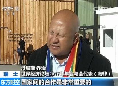 丹尼斯·喬治 世界經(jīng)濟(jì)論壇2017年年會(huì)與會(huì)代表(南非):我認(rèn)為中國(guó)在20國(guó)集團(tuán)中有很重要的地位,中國(guó)在金磚國(guó)家中的地位也很重要。同時(shí)與有著相同愿景的國(guó)家進(jìn)行合作,那些想要放棄巴黎協(xié)定的國(guó)家,只會(huì)破壞我們?nèi)祟惖奈磥,包括我們的子孫后代,國(guó)家間的合作是非常重要的。