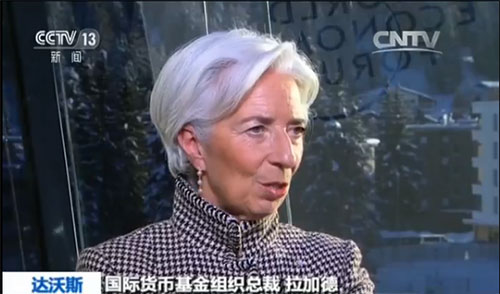 央視網(wǎng)消息:習(xí)近平主席17日在瑞士達(dá)沃斯舉行的世界經(jīng)濟(jì)論壇2017年年會(huì)開幕式上發(fā)表了題為《共擔(dān)時(shí)代責(zé)任 共促全球發(fā)展》的主旨演講,演講受到高度關(guān)注。在達(dá)沃斯論壇上,國際貨幣基金組織總裁拉加德接受了央視記者專訪。她表示,習(xí)近平主席在達(dá)沃斯經(jīng)濟(jì)論壇上的演講給她留下了深刻的印象。