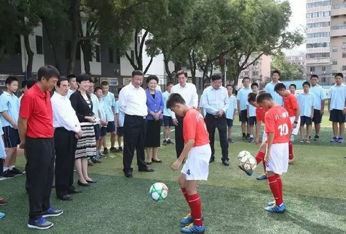 2016年9月,習(xí)近平重回母校八一學(xué)校,看到小足球隊(duì)員正在進(jìn)行帶球過(guò)人訓(xùn)練,笑著對(duì)大家說(shuō),50多年前我就在這個(gè)地方踢過(guò)球。那時(shí)候還是土場(chǎng)子。他帶著自豪地回憶說(shuō),“我們的球隊(duì)在北京市比賽中拿過(guò)冠軍,在全國(guó)比賽得了第四名!