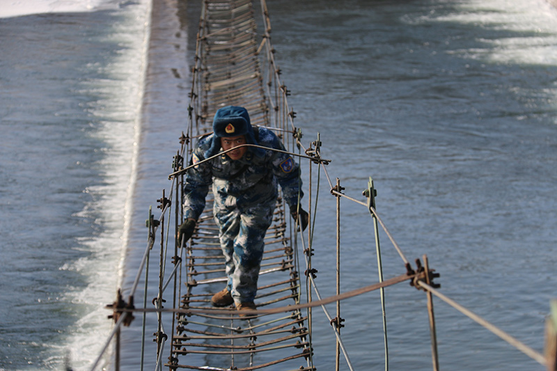 一條長約百米的簡易吊橋懸在大河上空,湍急的河水嘩嘩作響,積雪覆蓋在橋身,輕輕一步又晃又滑,加上六七米的高度,光是看一眼都能讓人心打怵腿發(fā)麻。這條鐵索橋是巡線路程的必經(jīng)之處,也是場站通信兵的成長之橋。2005年劉少杰以優(yōu)異的成績從空軍通信訓練基地畢業(yè),憑借基地崗位練兵徒手攀登第一、綜合成績前五的實力回到連隊準備大展身手,結(jié)果第一天就遇上了“吊橋難”的問題。他在搖擺不定的吊橋前踟躕不前。面對險惡環(huán)境毫無“實戰(zhàn)”經(jīng)驗的他一下子慌了神,所有專業(yè)技能都忘在了腦后。他的班長喊道:“穩(wěn)住步子,不要看腳下,你能行。”班長的鼓勵沒能使他克服恐懼心理,第一次巡線就這樣不了了之。