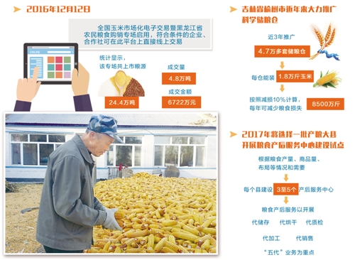 綏化市是全國產(chǎn)糧大市,2016年預(yù)計(jì)玉米產(chǎn)量940萬噸左右、商品量800萬噸以上,糧食銷售壓力較大。綏化市副市長李福軍告訴記者,該市將綏化地區(qū)一定規(guī)模的種糧大戶、農(nóng)業(yè)合作社直接吸收為國家糧食交易中心綏化專場會(huì)員,農(nóng)戶可利用自有糧庫或者租倉,將自有糧食烘干整理后在網(wǎng)上掛單銷售;也可以將糧食交到地方糧食部門指定的糧食交收庫,委托其開展代烘代儲(chǔ)代銷,將烘干后同等質(zhì)量糧食標(biāo)的集并后上網(wǎng)銷售!斑@不僅將有效緩解我市農(nóng)民玉米銷售壓力,而且也為國有糧庫開拓市場贏得生存空間創(chuàng)造了條件!崩罡\娬f。