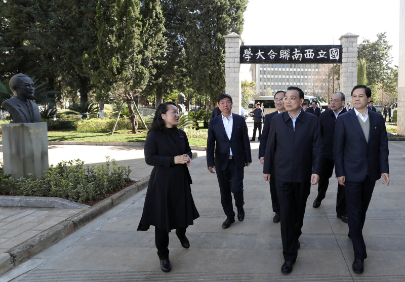 【李克強(qiáng):你們要將西南聯(lián)大精神發(fā)揚(yáng)光大】李克強(qiáng)24日來到位于云南師大的西南聯(lián)大舊址。寒假仍留校的學(xué)生們聞訊趕來?偫碚f,你們現(xiàn)在的教學(xué)條件比當(dāng)年好得多。當(dāng)年是“物質(zhì)上得不了,精神上了不得”。希望你們在這里汲取前輩們的精神養(yǎng)分,傳承剛毅堅(jiān)卓的文化品格,將西南聯(lián)大的精神發(fā)揚(yáng)光大。