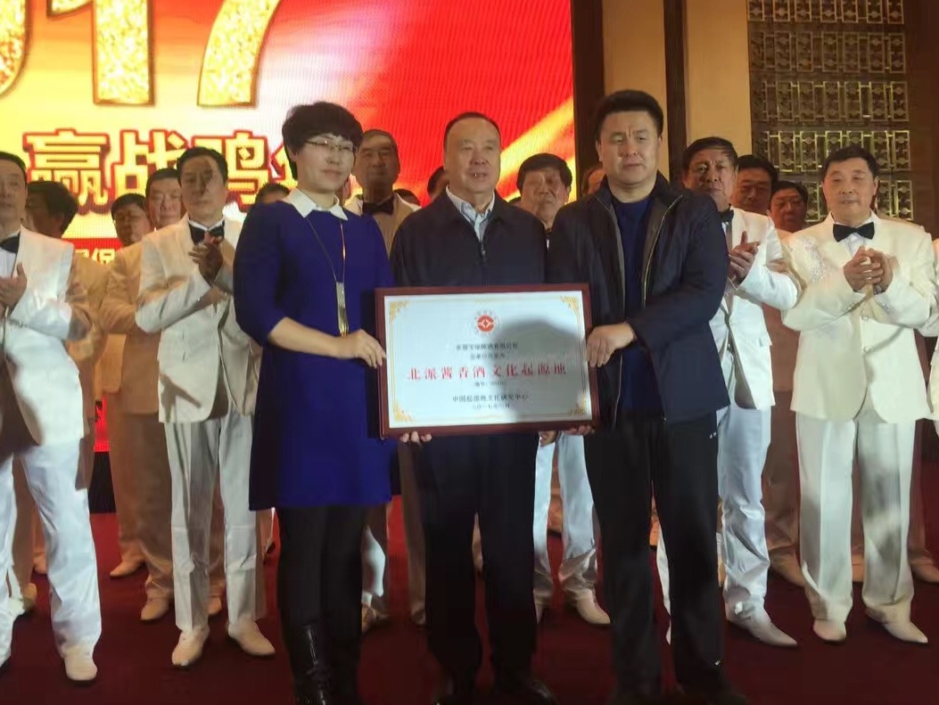 第十一屆全國政協(xié)副主席、中國西部研究與發(fā)展促進(jìn)會會長白立忱在新春聯(lián)誼會上為北派醬香酒文化起源地頒發(fā)認(rèn)證牌匾