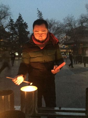 昨天凌晨三點(diǎn)多,北京晨報(bào)記者來到雍和宮的大門外,此時(shí)門口已有幾十人在排隊(duì)等待。來自湖北潛江的王凡排在隊(duì)伍的最前端,他已經(jīng)連續(xù)3年搶到大年初一的頭炷香。為此他2014年排了48小時(shí),2015年排了77小時(shí),2016年排了35小時(shí)。看到記者,王凡開心地打起了招呼。他稱,自己三天前就從湖北趕到北京,就是為了搶頭香!敖衲甑念^香也是囊中之物。”他說,為了能夠順利搶到頭香,今年還帶了侄子和三個(gè)徒弟幫忙!罢麄(gè)環(huán)節(jié)我都太熟悉了”,他十分有信心。