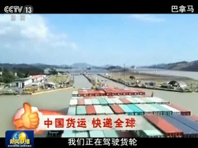 我是中遠海運中遠阿科巴輪的船員,我們正在駕駛貨輪通過巴拿馬運河。去年巴拿馬運河拓寬新船閘以后,中遠海運巴拿馬輪成為通過運河的第一艘船舶。目前,我們公司成為運河最大用戶之一。