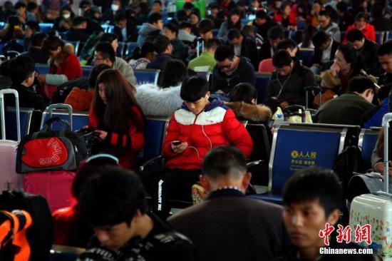 資料圖:昆明火車站候車室里等待的旅客。中新社記者 李進紅 攝