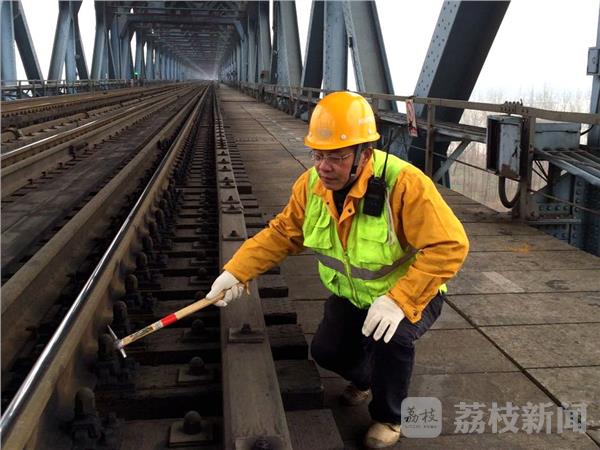 “這個(gè)銹蝕點(diǎn)有點(diǎn)嚴(yán)重,需要清除重新做油漆?、咳……”1月28日,在離江面30多米的南京長江大橋鐵路橋面上巡守的劉為保被猛烈的江風(fēng)灌得直咳嗽。54歲的劉為保是上海鐵路局南京橋工段一名巡線工,今年春運(yùn)是他陪伴南京長江大橋的第 37 個(gè)春運(yùn),“大橋就是一個(gè)瀏覽歷史的窗口。從中,你會(huì)看到許多別致的風(fēng)景!眲楸Uf。