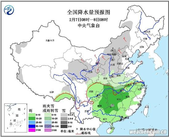今天,此輪降水將大幅擴張,范圍和強度都將達到最大,覆蓋面積約為330平方公里。中央氣象臺預計,2月7日至8日夜間,我國中東部地區(qū)將出現(xiàn)大范圍雨雪天氣。西北地區(qū)中東部、華北大部將有小到中雪,陜西關中、江漢中北部、江淮北部等地有雨夾雪或雨夾雪轉雪,其中,內蒙古中部等地局地有大雪;西南地區(qū)東部、江淮南部、江南和華南等地有小到中雨。