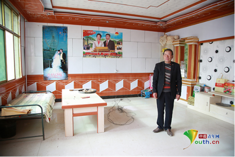 李尕猴在家中,其子李玉平為小寨村有史以來第一個大學生。 中國青年網(wǎng)記者 孫釗 攝