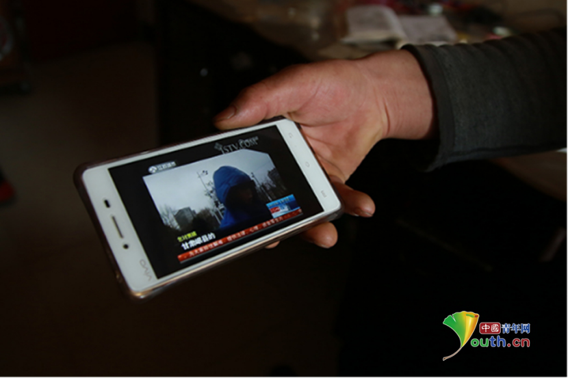 村民李治平手機中關于岷縣乞討人員的新聞視頻,該視頻系幾年前所拍攝。中國青年網(wǎng)記者 孫釗 攝