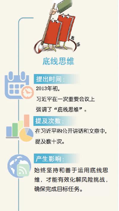 堅持底線思維,是以習近平同志為核心的黨中央保持戰(zhàn)略定力、應對錯綜復雜形勢的科學方法,更是推動新一輪改革發(fā)展的治理智慧。