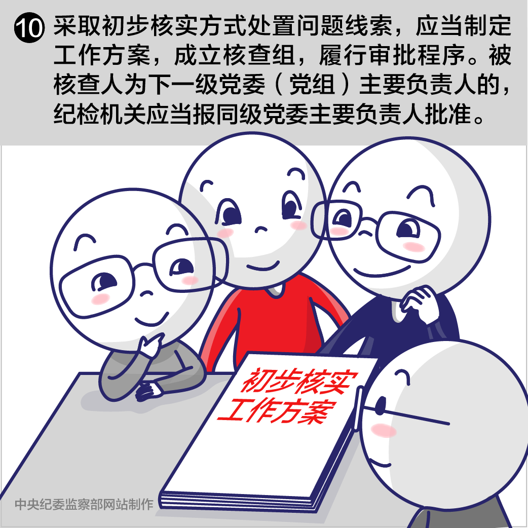 第二十二條采取初步核實方式處置問題線索,應(yīng)當(dāng)制定工作方案,成立核查組,履行審批程序。被核查人為下一級黨委(黨組)主要負責(zé)人的,紀(jì)檢機關(guān)應(yīng)當(dāng)報同級黨委主要負責(zé)人批準(zhǔn)。