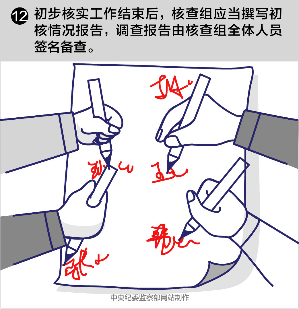 第二十四條初步核實工作結(jié)束后,核查組應(yīng)當(dāng)撰寫初核情況報告,列明被核查人基本情況、反映的主要問題、辦理依據(jù)及初核結(jié)果、存在疑點、處理建議,由核查組全體人員簽名備查。