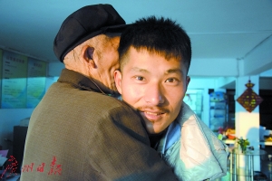 14日13時(shí)30分,闊別4年多的父子終于見面了。一見面,張伯就老淚縱橫,一進(jìn)門,就快步上前一把摟住了坐在椅子上的兒子,嘴里用陜西方言一遍遍大聲詢問兒子,“這些天你都跑到哪里去了呀!你怎么不給家里說!”而患有輕微精神障礙的張旭江有些語無倫次,甚至不認(rèn)識(shí)自己的父親。