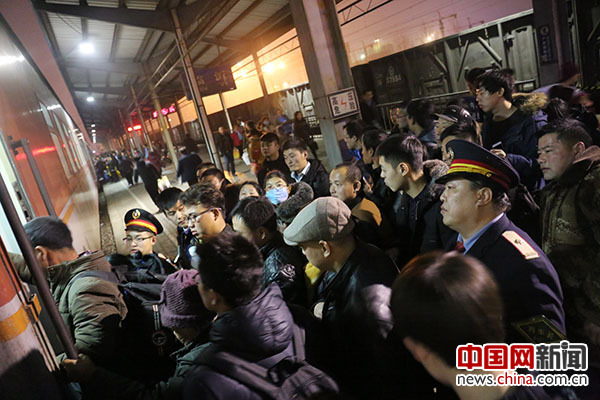 2月14日,列車長朱運濤在上下乘客較多的臨沂車站觀察。中國網(wǎng)記者 郭澤涵 攝