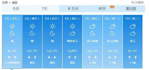 北京未來(lái)7天天氣預(yù)報(bào)。